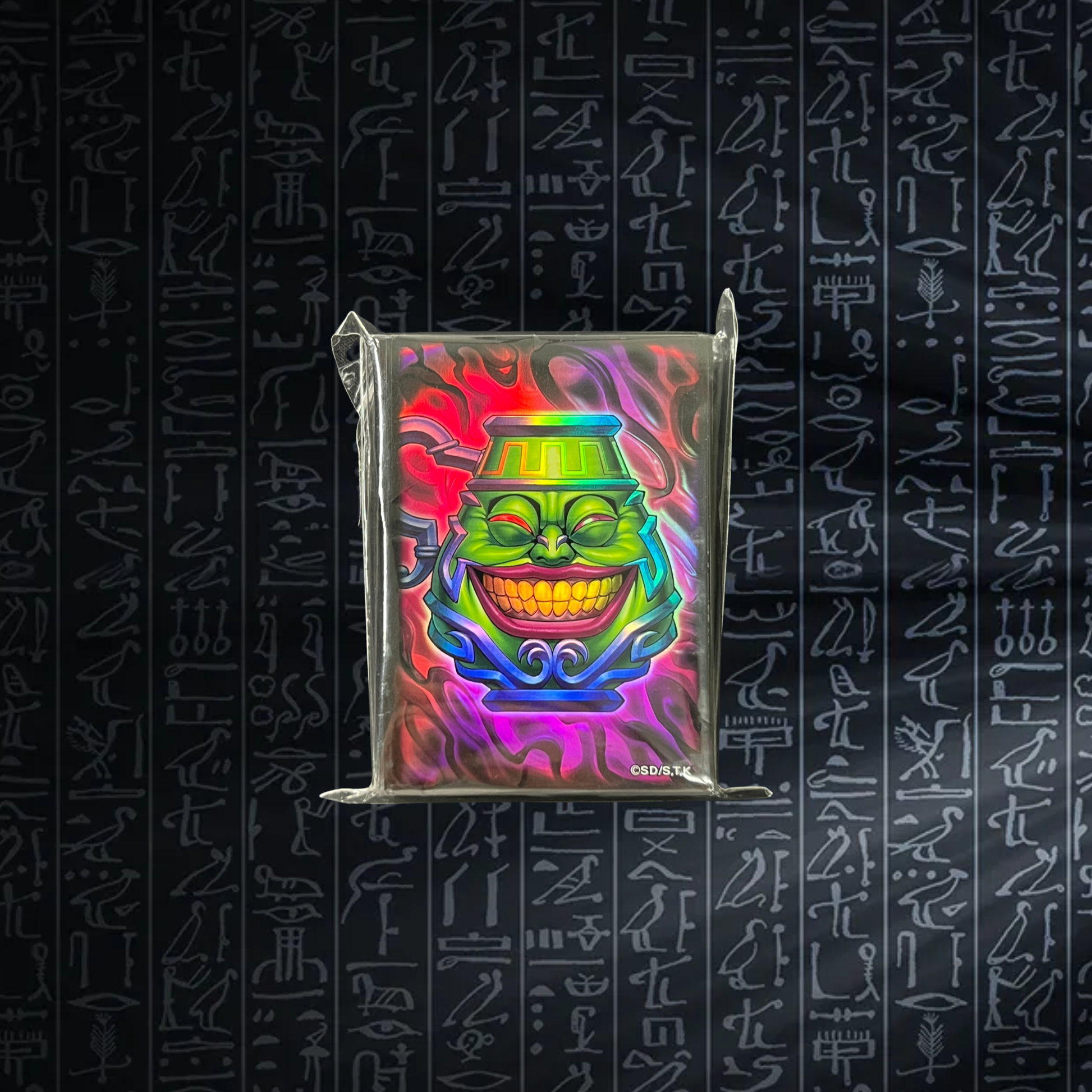 Diese ikonischen Yu-Gi-Oh! OCG Kartenhüllen zeigen den legendären Pot of Greed / Topf der Gier – eines der bekanntesten und kultigsten Zauberkarten-Motive überhaupt. Perfekt für Sammler, Meme-Fans oder Spieler, die ihrem Deck einen unverwechselbaren Look geben möchten.